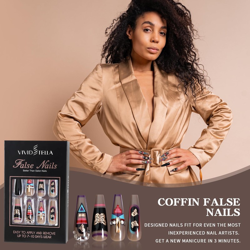 - 【Affordable Coffin Set】Extra long artificial false nailswith professional-quality, precise, and super comfortable shape that’s hassle free. Show you a attractive look and a nice manicure experience.