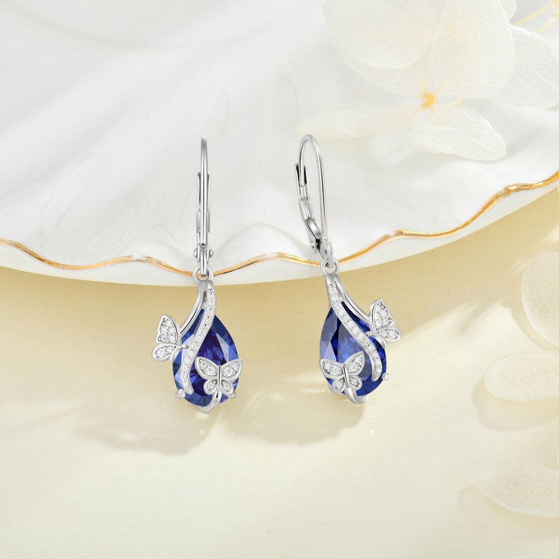 - 8*12mm Birthstone & Butterfly Design: This exquisite women's earrings features a delicately pear-cut birthstone and charming butterfies, symbolizes transformation, beauty, and grace, making it a perfect romantic gift for her