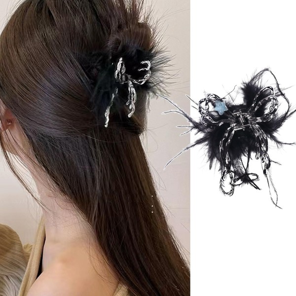 Butterfly Hair Clips Butterfly Hair Claw Clips French Black Feather Design Elegant Hair Barrettes for Styling for Thick Hair Silver Hiar Claw Clip Medium Hair Accessories Hair Decorations 1Pcs