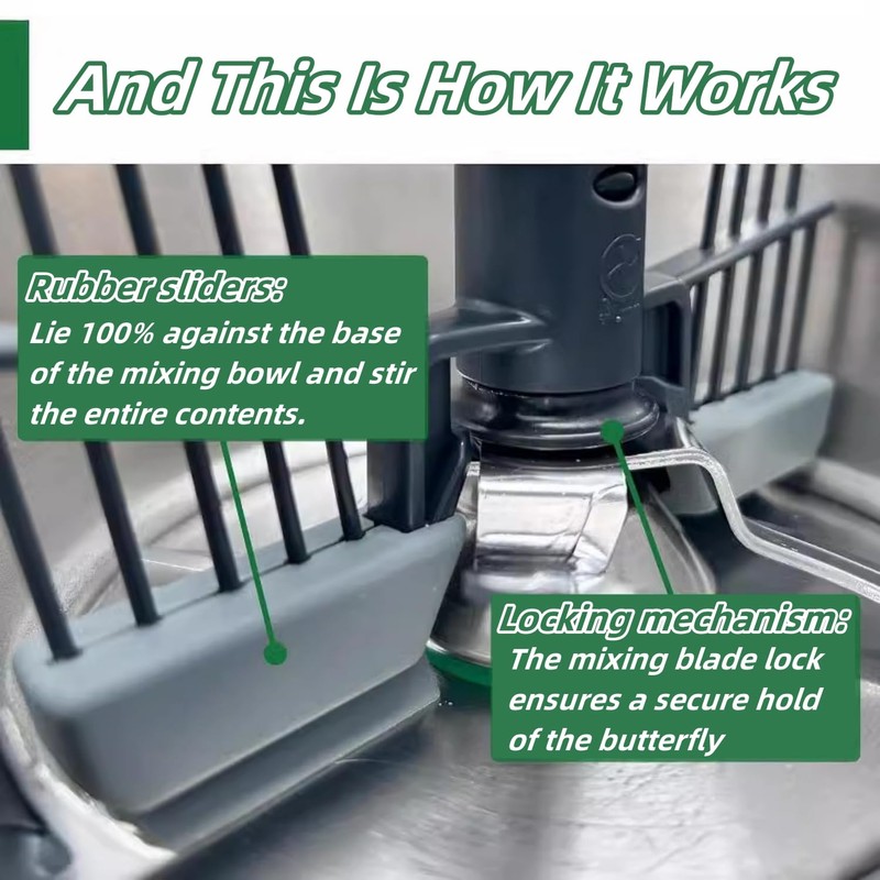 • MULTIFUNCTIONAL MIXING EXPERIENCE The butterfly bar mixes ingredients perfectly to create satisfying textures and flavors. It is an indispensable multifunctional device for preparing various recipes (such as egg white, creams or mousses), making the cooking process more convenient and efficient.