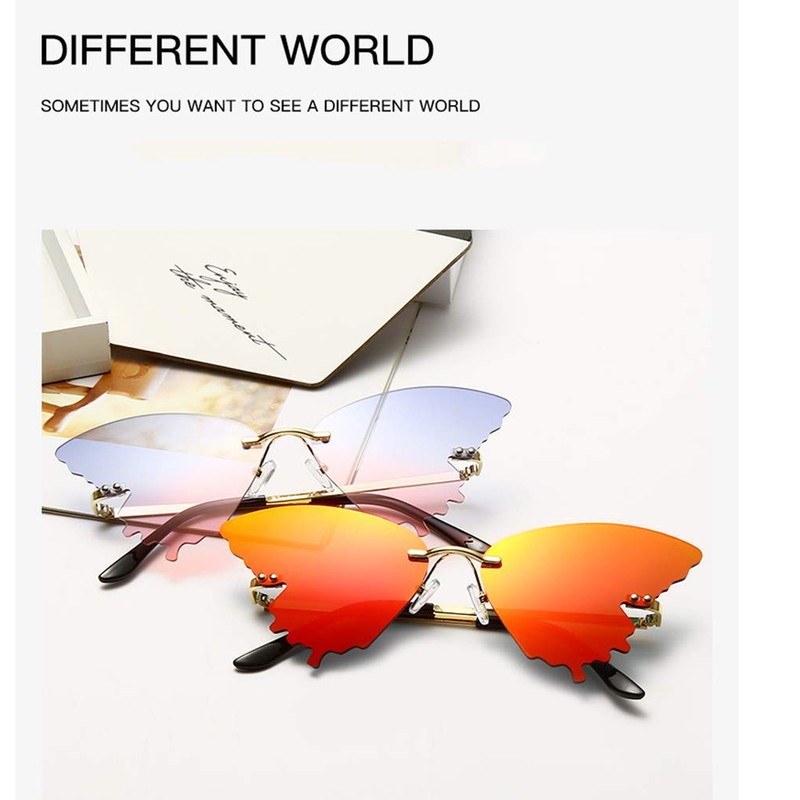 Butterfly Sunglasses for Women/Men Oversized Rimless Eyewear Luxury Trending Cat Eye Sun Glasses Streetwear UV400 (c4)