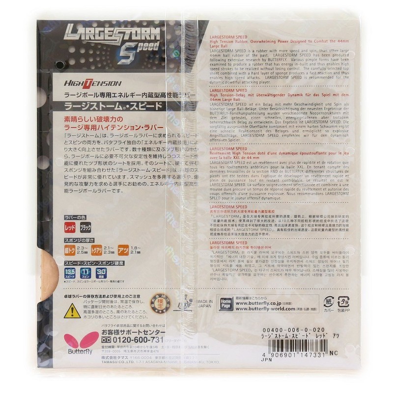 Butterfly Table Tennis Rubber Large Storm Speed Large Ball Tension (Speed) 00400 Red Extra Thick