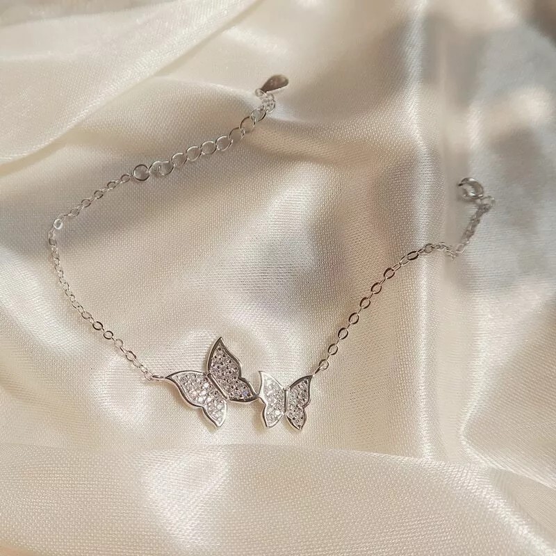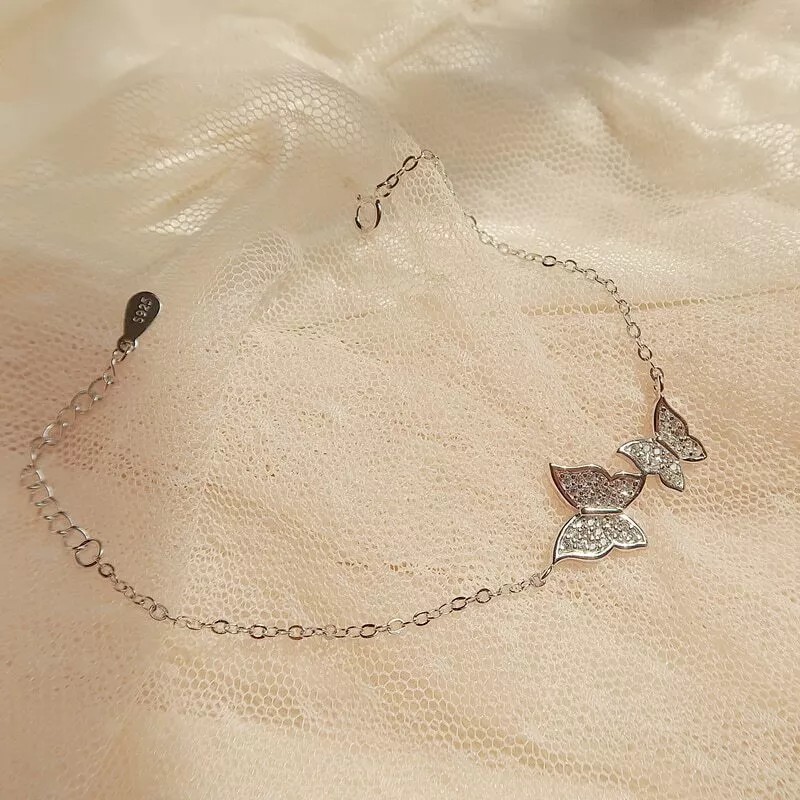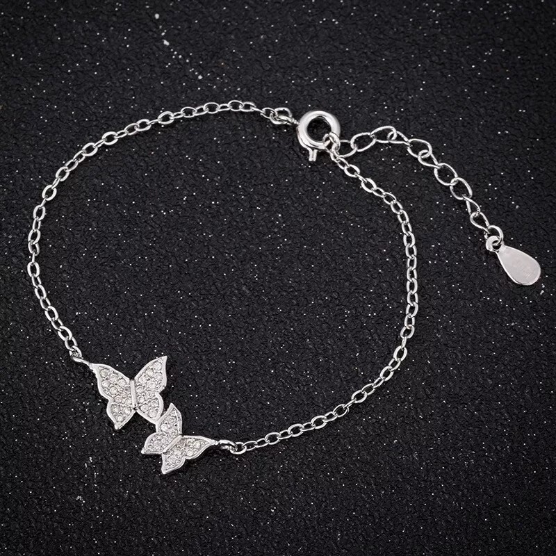 Butterfly ZARD Double Butterfly Dainty Link Chain Bracelet in CZ Pavé Sterling Silver