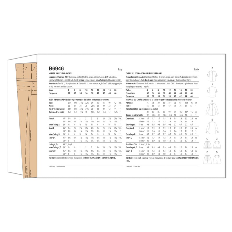 Butterick Misses' Collared Shirts and Pleated Shorts Sewing Pattern Kit, Design Code B6946, Sizes 4-6-8-10-12, Multicolor