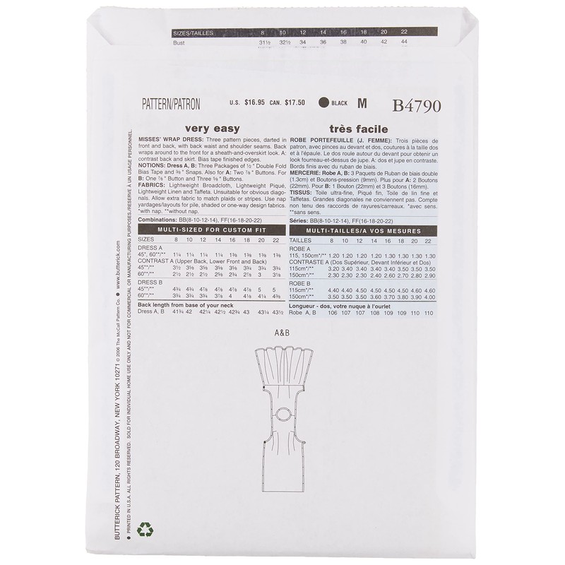 Butterick Patterns B4790 Size FF 16-18-20-22 Misses Wrap Dress, Pack of 1, White
