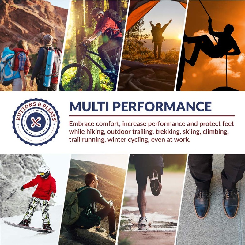 - ADVANCED DURABLE DESIGN With reinforced yarn in the heel and toe for increased durability and a fully cushioned footbed for additional comfort plus performance, these wool socks for men and women have specially engineered arch compression reinforcement for full-motion support, stability, and greater balance to prevent any slipping or sliding while you are out and about!