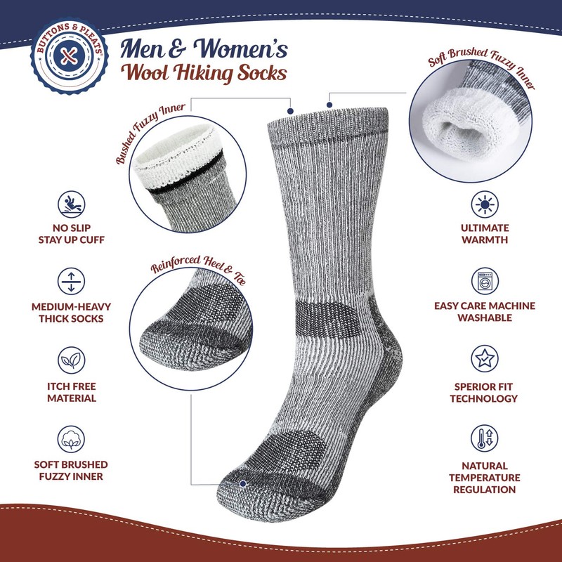 Buttons & Pleats Wool Socks for Men Women Merino Thermal Warm Cozy Winter Fuzzy Boot Sock Charcoal LXL