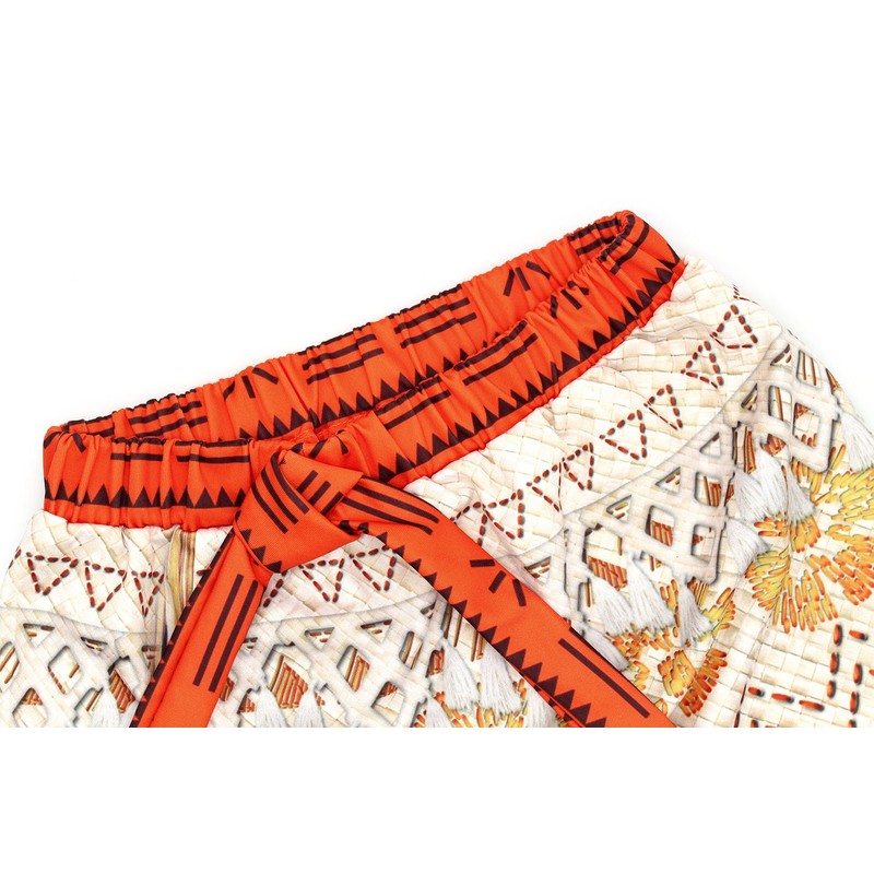 The bright orange color and the flowers patterns on the top serves both as a fashionable look and a figure-flattering element. It adds definition to the body and enhances the overall style and temperament of the costume.