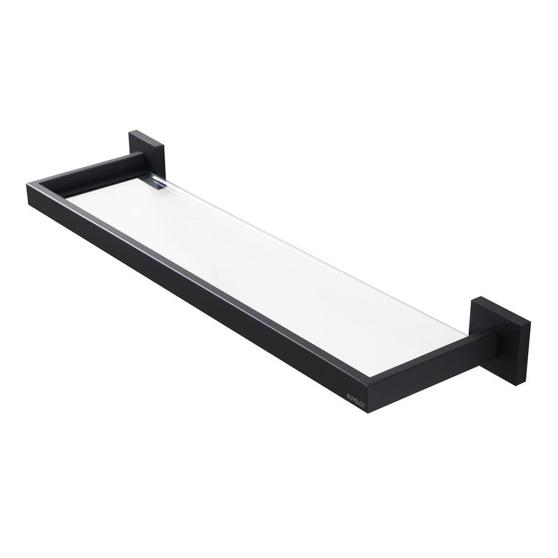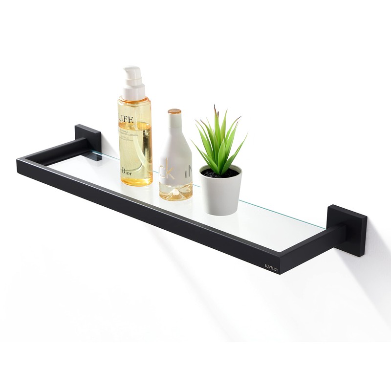 BUVELOT Bathroom Shelf, Glass Shelf for Bathroom, 22.32 Inch Large, 8mm Extra Thick Tempered Glass Shelves Wall Mounted, Square Modern Rectangular, Matte Black,No Assembly, 071090-MB