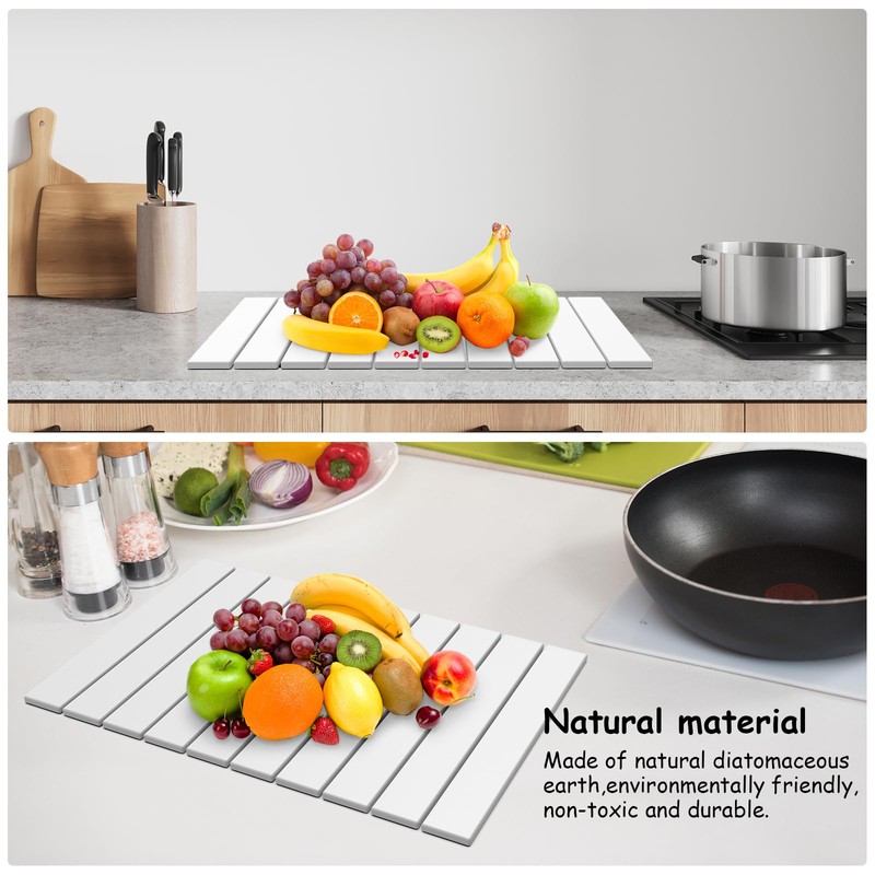 Buwico Large Stone Dish Drying Mat for Kitchen Counter, 24"(L)×16"(W) Diatomaceous Collapsible Dish Drying Mat, Water Absorbing Mat for Dishes Bottles Cups,Match Any Countertop (24"(L)×16"(W))