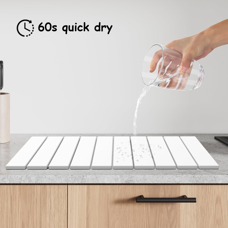 - Super Absorbent:This stone drying mat for kitchen counter is super absorbent, can quickly absorb water in a few minutes, keep the countertop continuously dry and tidy