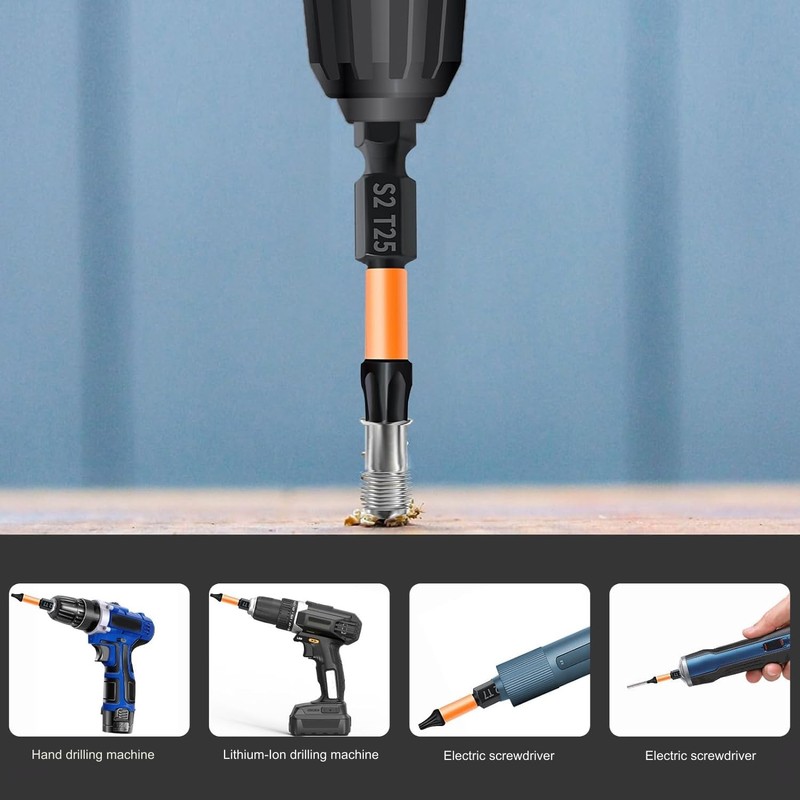 - Strong Magnetization: This magnetic bit set features a strong magnet that attracts screws, maintaining its magnetic properties even under the shock loads of large torques. This ensures a longer service life for the bits.