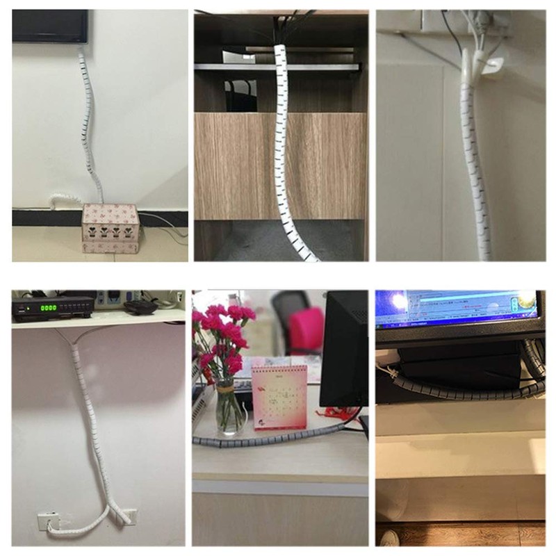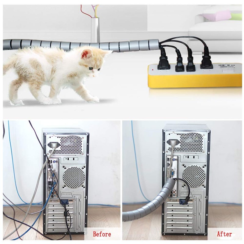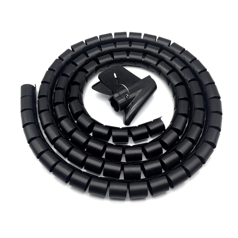 BuxiuGK Universal Cable Tube 28 mm x 2 m Plastic Flexible Cable Organisation with Retractable Aid for Bundling Cables for Computers, TVs, Black