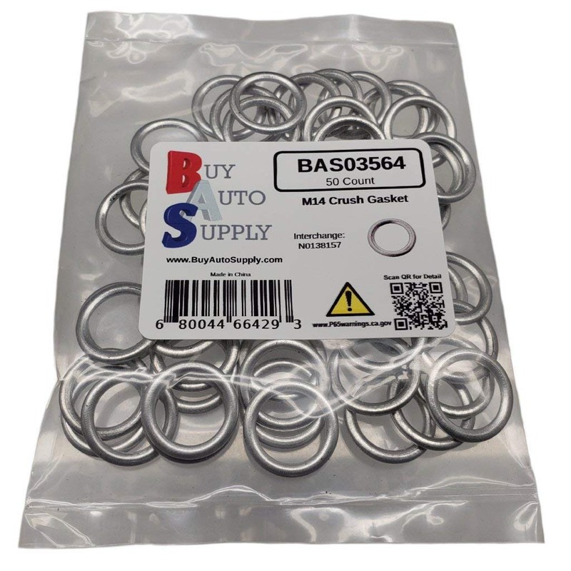 Buy Auto Supply # BAS03564 (50 Pack) M14 Aluminum Crush Washer Oil Drain Plug Gasket Aftermarket part Fits in Place of VW N0138157 & More (I.D: 14.2mm / O.D: 19.9mm)