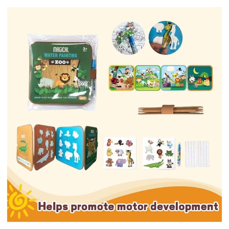 Reusable drawing book:When you paint it with a water pen, the forest and animals will present their originally rich and colorful colors. When the painted books dry, their colors will disappear again. So it is a notebook that can be played with repeatedly.