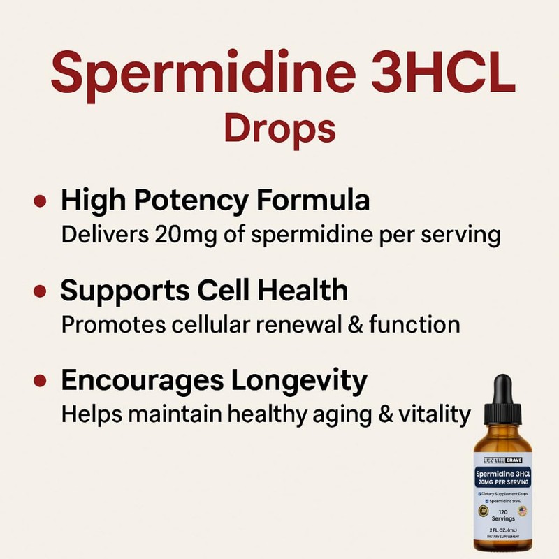 BUY THE CRAVE Spermidine Liquid Drops – 20mg per Serving – Cellular Health & Longevity Support – Fast-Absorbing Formula – 2 fl oz Dropper Bottle – Non-GMO, Vegan, Sugar-Free