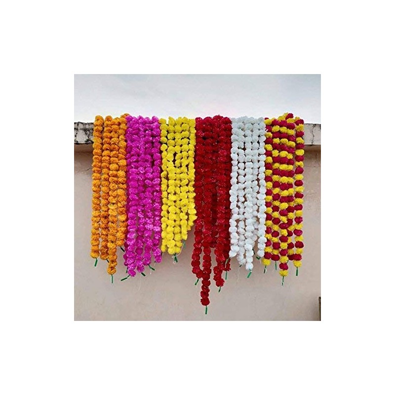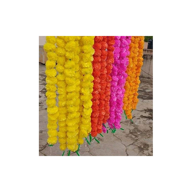 Buycrafty 5 Pcs Artificial Marigold Garland 5ft Long Party Celebration Indian Wedding Indian Occasion Decorations Home Christmas