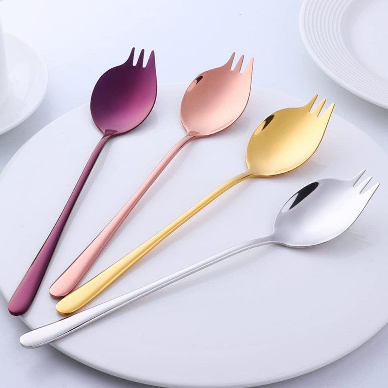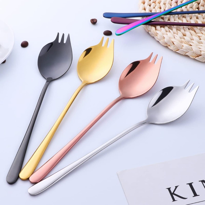 - Multi-functional: The fork and spoon are a two-in-one feature. You can use the fork for piercing skips, ocaze, or salad, and you can easily scoop it into pasta or ramen. Easy to use with the spoon to eat soup, curry or fried rice