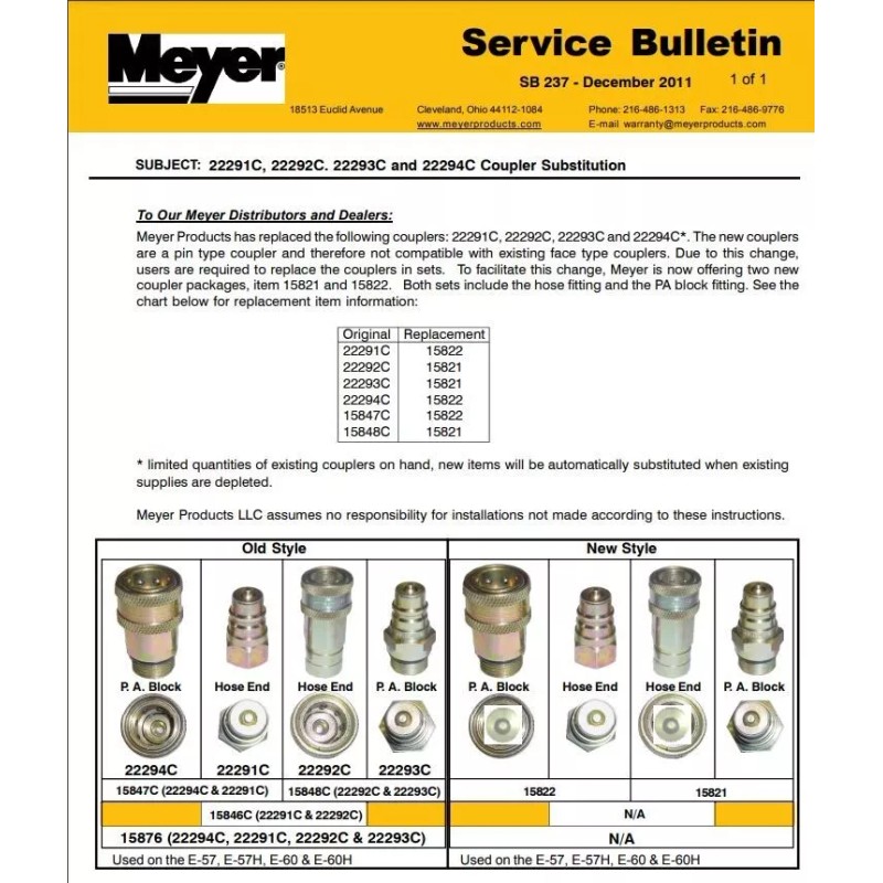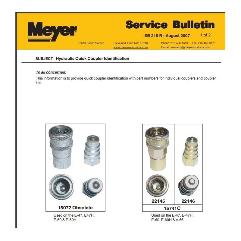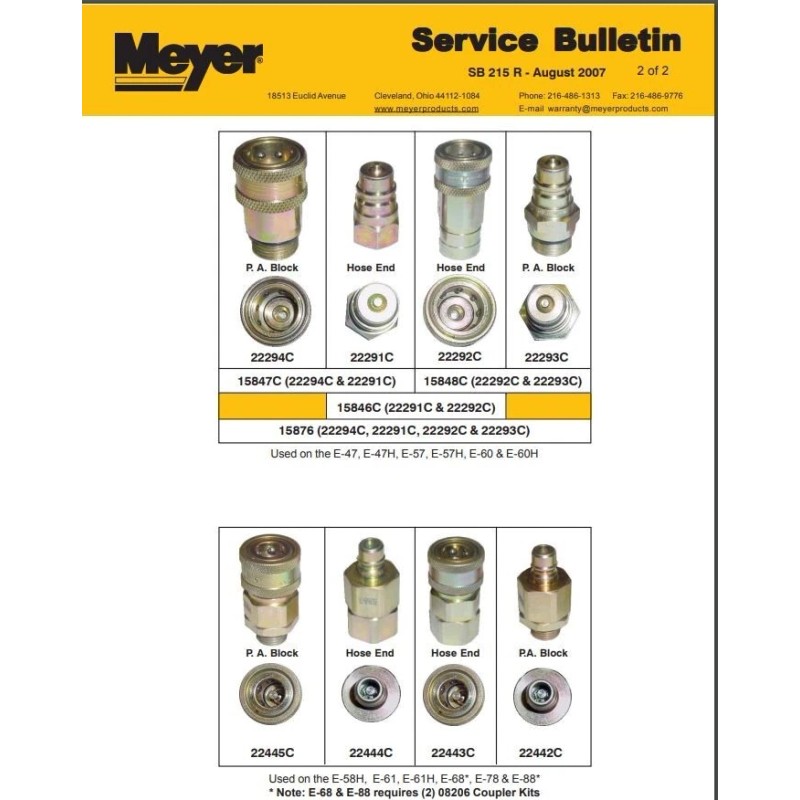 BUYERS MEYER SNOW PLOW HYDRAULIC QUICK COUPLER HOSE END KIT 15846 22291 22292