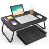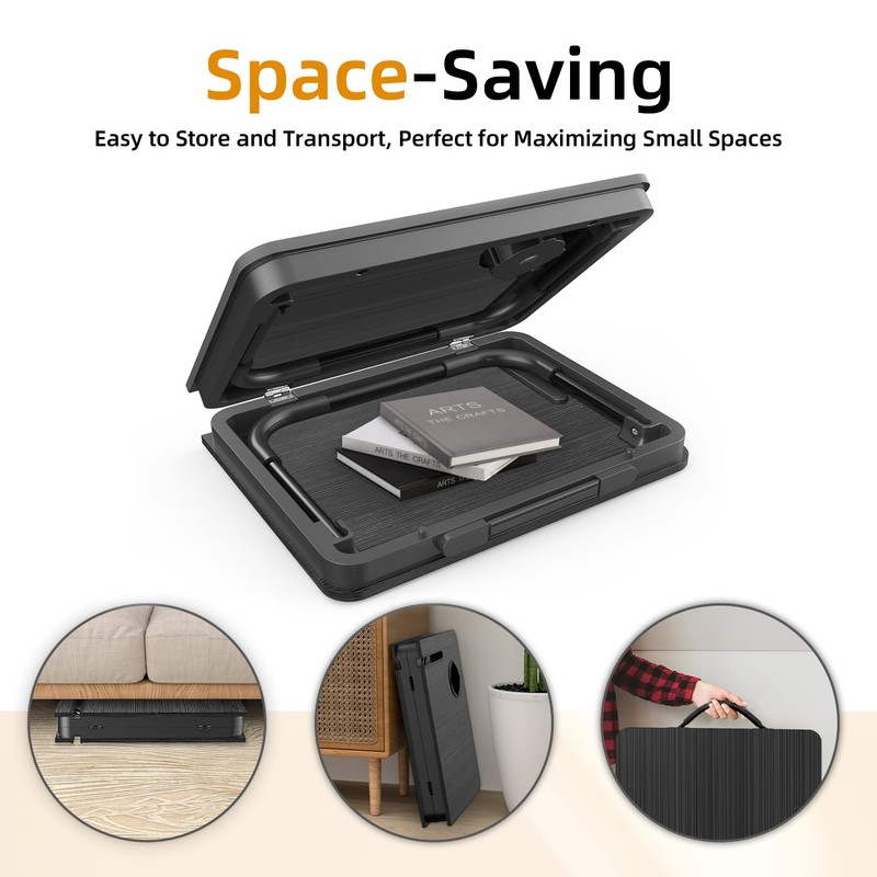 - EASY TO STORE AND PORTABLE: With its lightweight design, this foldable laptop desk can be easily carried from room to room or taken on outdoor trips. After use, fold it up and store it next to the sofa or under the bed without taking up much space.