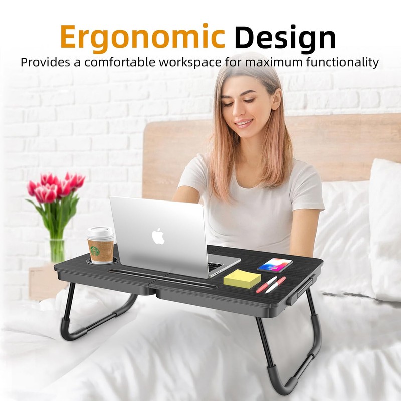 - PERFECT FOLDABLE DESIGN: 23.43"(L)x15.75"(W)x9.25"(H).This laptop bed desk is designed to be foldable, allowing you to easily open the table legs for use without any assembly. When not in use, simply fold it in half for compact storage, saving space in your room.