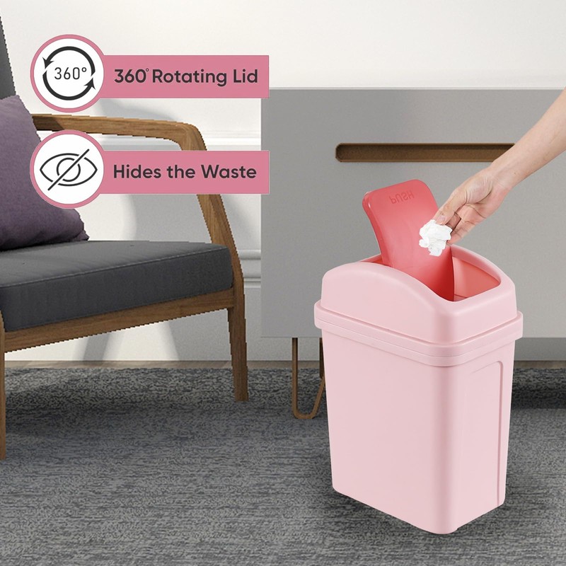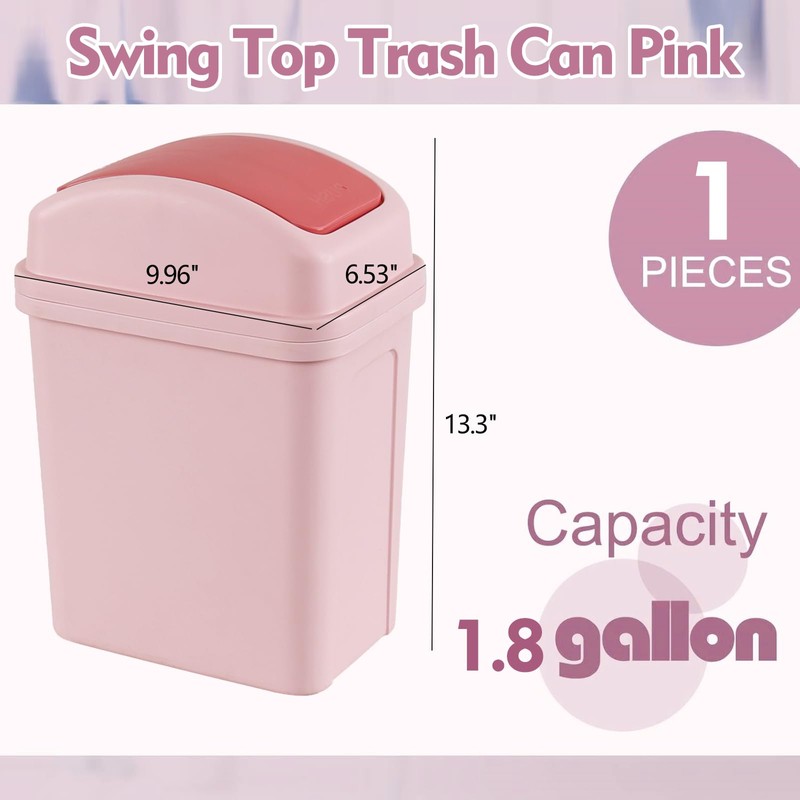 Buyitt 1.8 Gallon Pink Swing Top Garbage Can, Plastic Small Trash Can for Home and Office Use