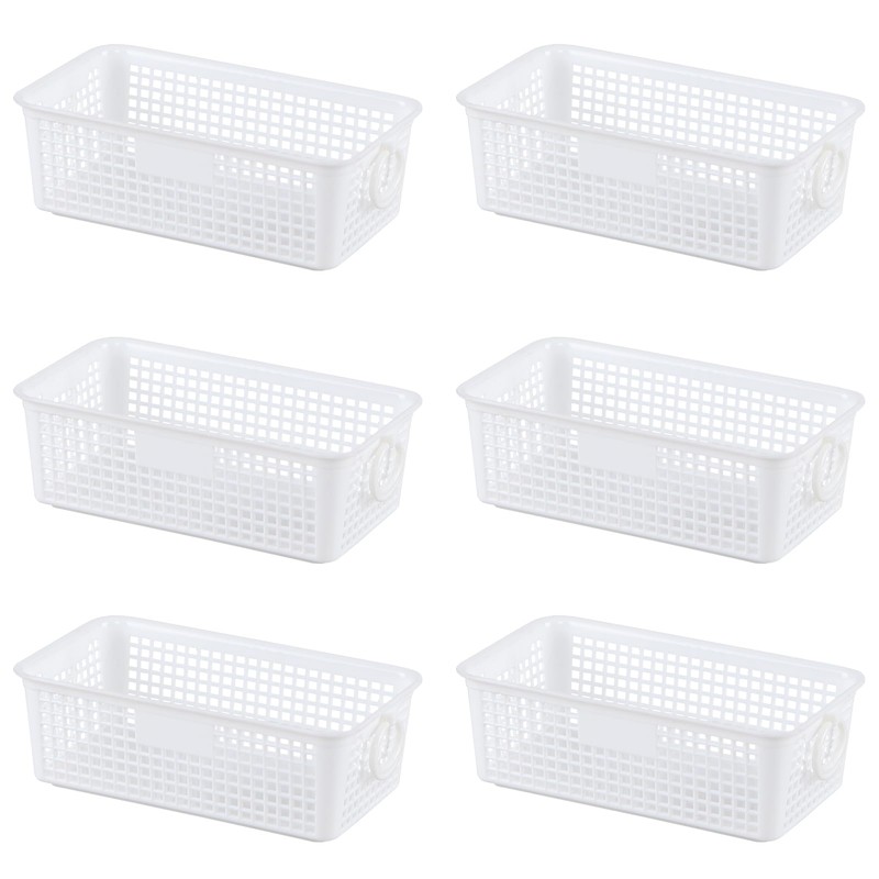 Buyitt Plastic Small Office Desktop Baskets, Set of 6 Rectangular Storage Basket, White