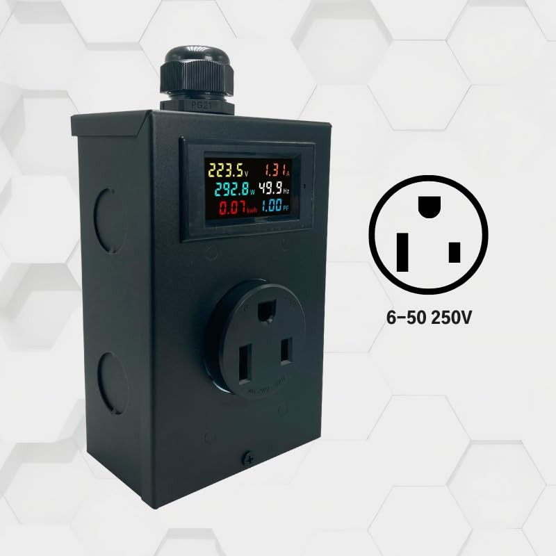 - ✅ COMPLETE KIT FOR YOU TO INSTALL: Includes heavy duty steel box housing, meter display module, 6-50 outlet and cable gland. Everything you need to install in your existing 240V circuit