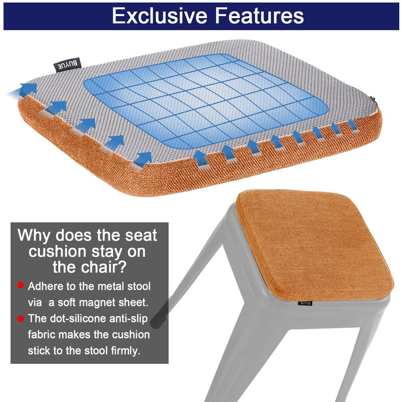 - ✦Product Details✦ 11"W x 11"D x 1.3"H, Please measure your stool chair size first. Include 4 pcs Square shape cushions. Surface: breathable Woven, Inside:32D Sofa Sponge + a piece of magnet, Bottom: Silicone Anti-Slip Fabric.