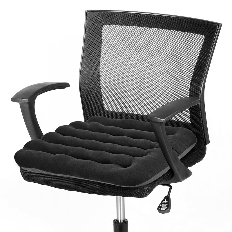 BUYUE Good Support Office Chair Cushion Padded, Soft Velvet Comfortable Non-Slip Seat Cushion for Computer Desk Kitchen Chair (1 Count, Black)