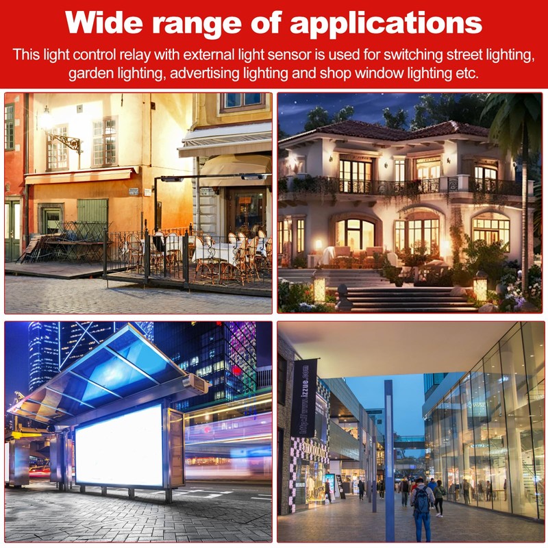 - Wide application: this photo relay with external light sensor is used for switching street lighting, garden lighting, advertising lighting and shop window lighting, etc.