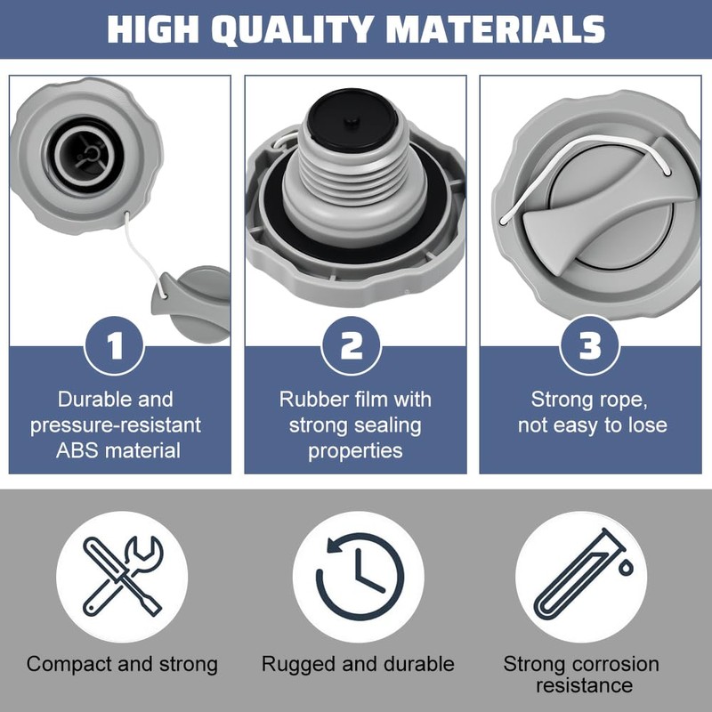 - 1. Leak-proof thanks to precision manufacturing, pressure stabilising: precision spiral thread (diameter 5.5 ± 0.1 cm) with double sealing lip. Supports the maintenance of air pressure in typical hot tub operating situations (0.5-1 bar). Suitable for households and mobile use. Note: sealing effect depends on valve condition
