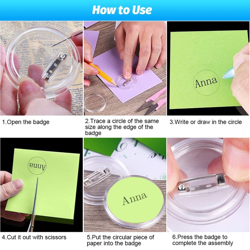 • Large quantity for your daily use: Our package contains 50 complete transparent breast badge pens, which are 50 round caps and 50 matching back plates with two-piece pens. You can place different pictures and the quantity is enough to meet your daily needs. Each small badge measures about 1.5 inches and is suitable for holding small cards, pictures etc. They also help you cut standard circles easily.