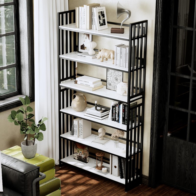 - 【ELEGANT MODERN STYLE CONSTRUCTED WITH STURDINESS】This bookcase is constructed by high-quality Ecological board and powder-coated metal frame. Guaranteed superior load-bearing, durability, and sturdiness. The shelves of this bookcase have textured surfaces, they are waterproof, anti-scratch, and very easy to clean.