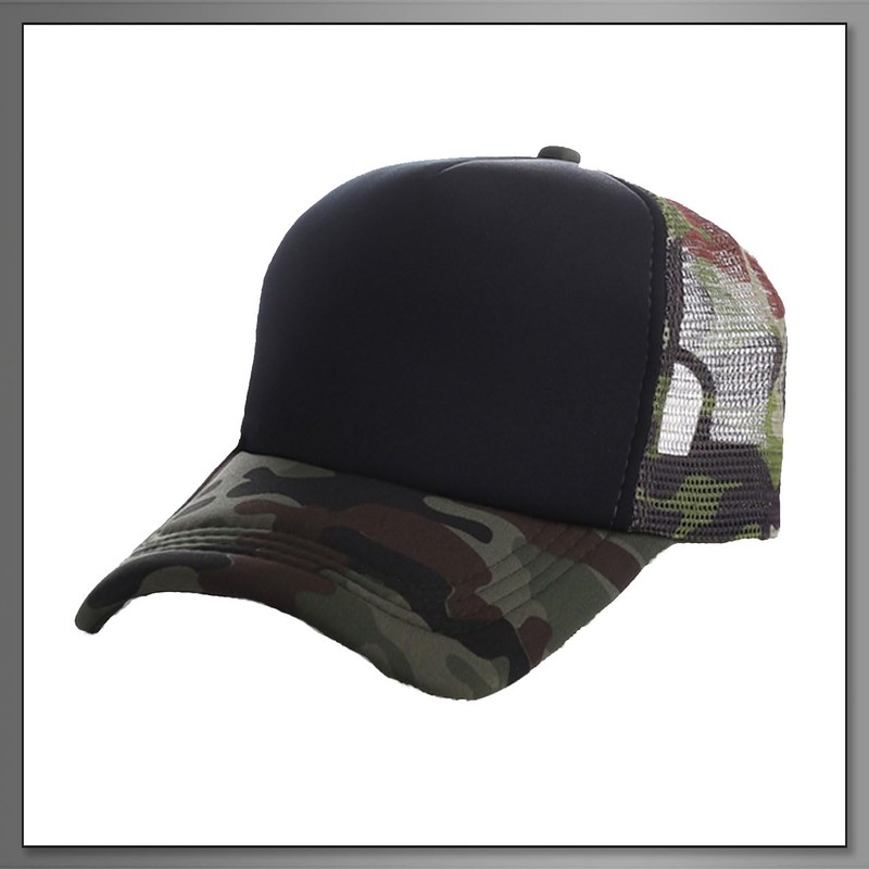 - This mesh cap has a cool design that combines camouflage and solid colors