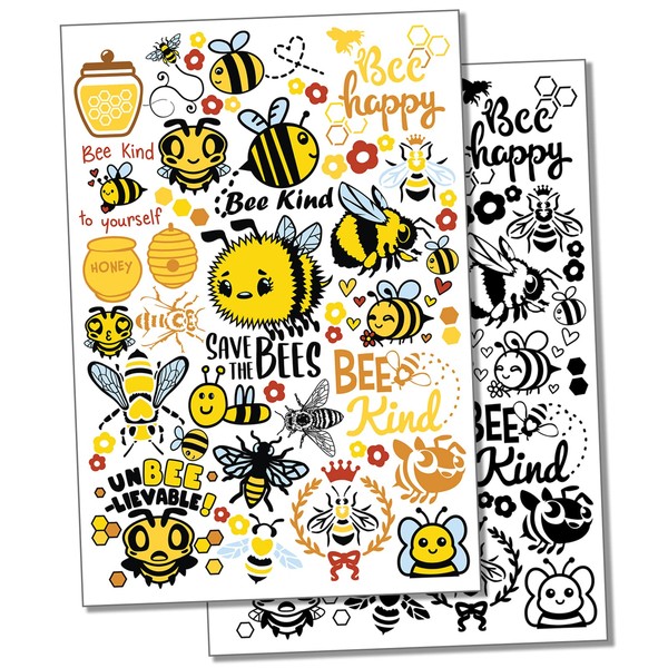 Buzzing Honey Bees Hive Temporary Tattoo Water Resistant Fake Body Art Set Collection - Black (One Sheet)