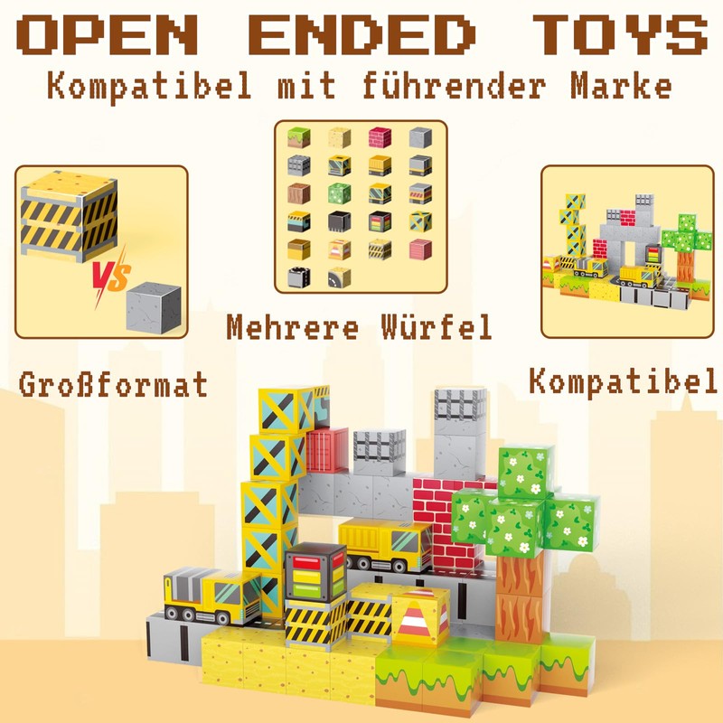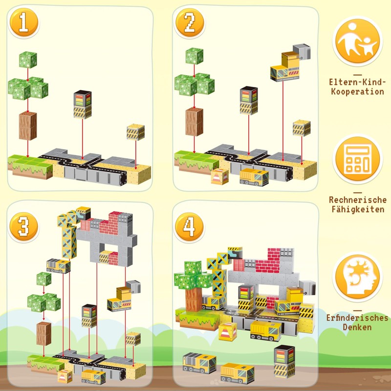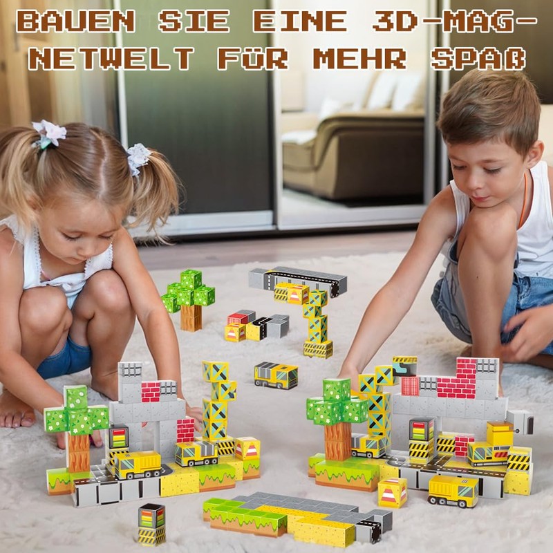 From bright yellow excavators and steel-laden trucks to zebra crossings and traffic light crossings to warning fences, concrete supports and lush tree magnets. Children can build free-floating mountain roads, high-rise buildings or miniature towns from slate red bricks and industrial yellow steel plates. Each magnetic building blocks with detailed textures such as concrete cracks awakens their sense of architectural aesthetics.
