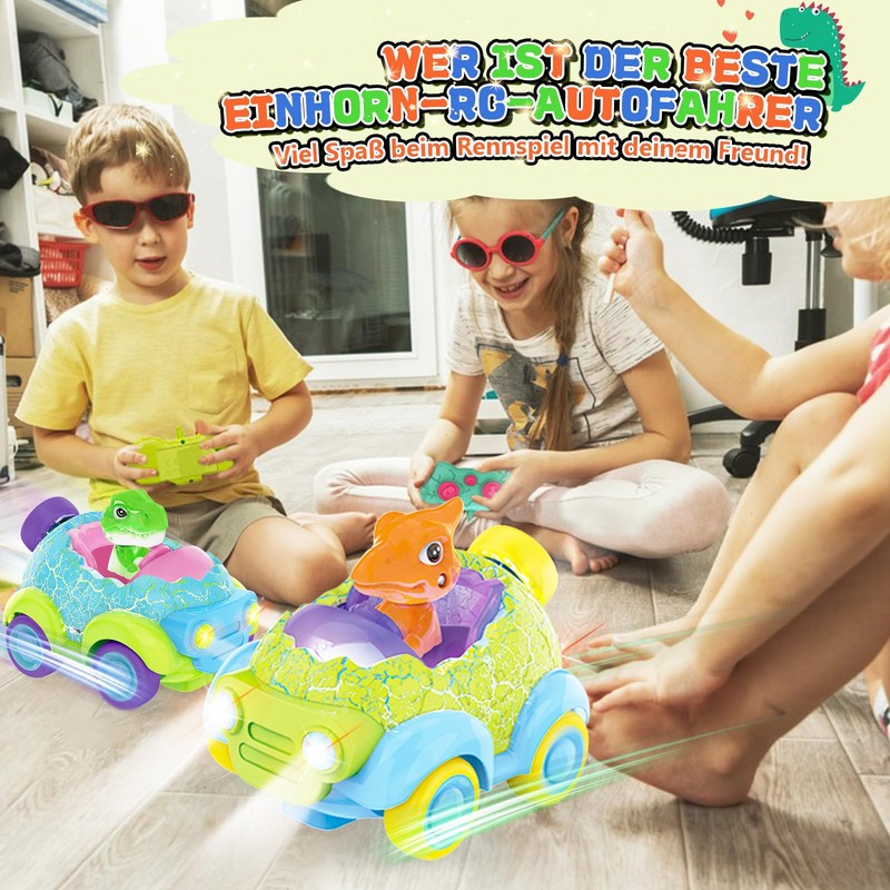 - Can play at the same time: This product contains two different remote controlled cars, this dinosaur remote control car with 2.4 GHz remote control technology, can play more than one toy car at the same time without disturbing each other, you can play with other children to cultivate children's spirit of competition and teamwork; parents can also accompany their children to play together to develop a good elelelelelelelrelationship.