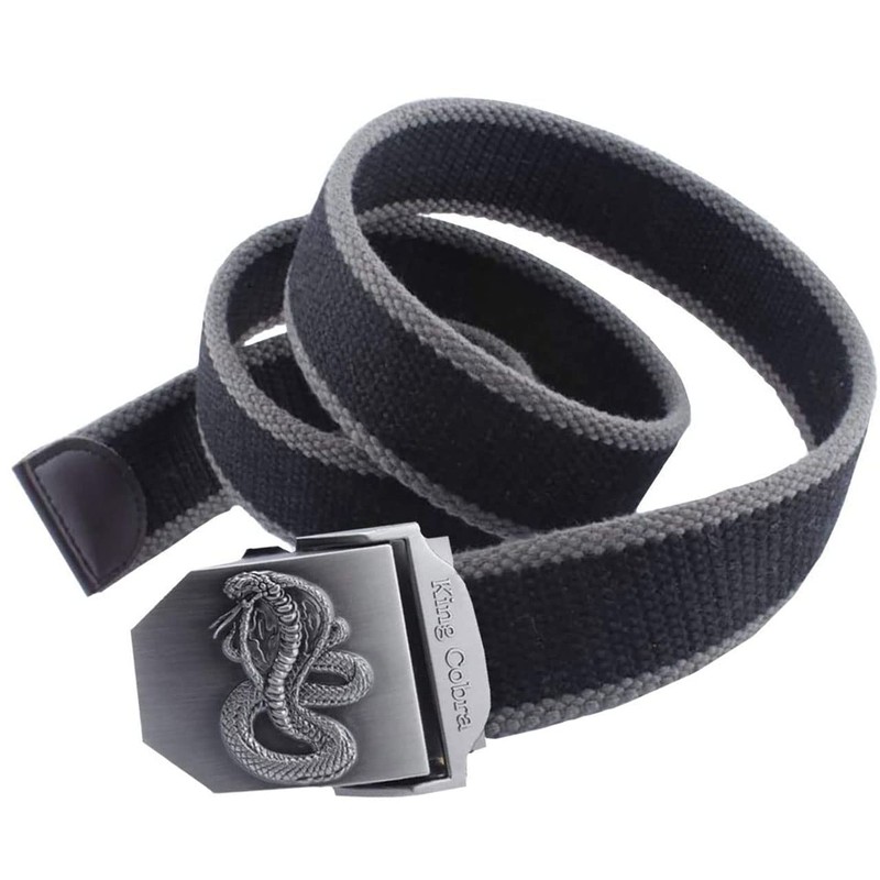 A casual men's belt with chic coloring and stylish snake pattern python buckle.