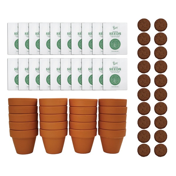 BUZZY Daisy Seeds & Genuine Terracotta 5cm Mini Pot Bulk Pack (20 Count), Includes 20 Each of pots, Soil pellets and Seeds - Great for Favors, Crafts, School Projects - Guaranteed to Grow