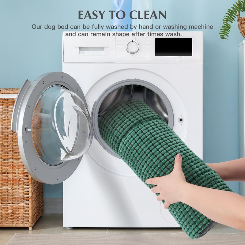- 【Comfortable Memory Foam Design】: Premium memory foam makes the dog crate bed anti-anxiety for dogs. The foam is designed to provide ample cushioning and support, while also preventing overheating. Note: The vacuum packaging requires the foam flattened and waited 15 mins to recover to put the cover on.