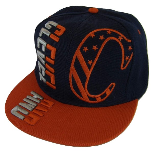 BVE Sports Novelties Cleveland Raised Text Adjustable Snapback Baseball Cap (Navy/Red)