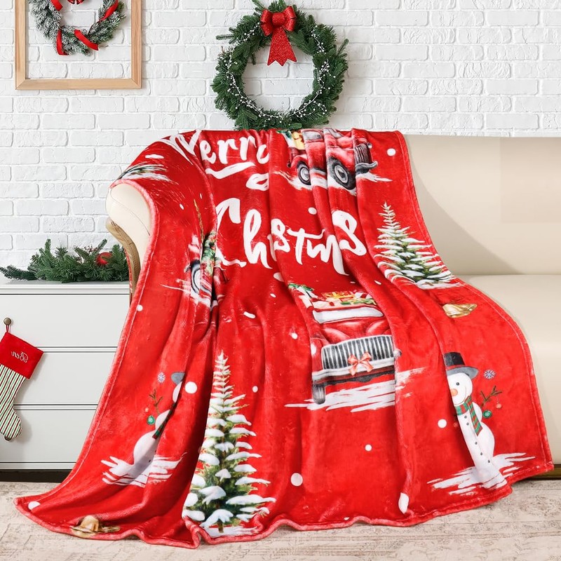 - Design: This blanket is made of skin friendly fabric, which is breathable, comfortable, lightweight, and does not compress the body. A blanket is a lifestyle item that can be used all year round. A practical and fashionable blanket is worth having.The red truck and snowman patterns make it visually more beautiful.