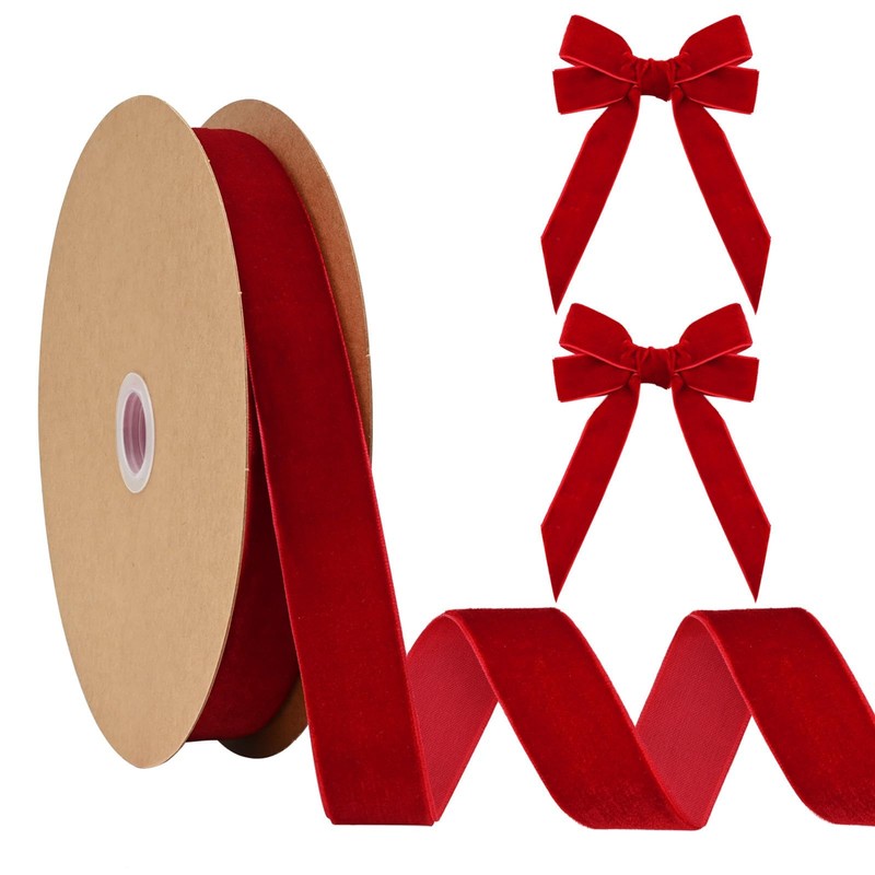 • 【PERFECT SIZE】:Velvet ribbon is 1 inch wide and 25 yards long, great for gift wrapping and crafting!
