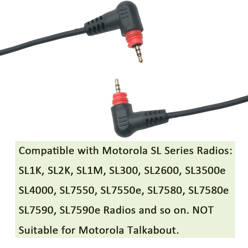 - Walkie talkie earpiece headset Compatible with Motorola SL Series Radios: SL1K, SL2K, SL1M, SL300, SL2600, SL3500e, SL4000, SL7550, SL7550e, SL7580, SL7580e, SL7590, SL7590e Radios and so on. NOT Suitable for Motorola Talkabout/3.5mm/theater/cobra.