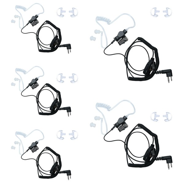 BVMAG Acoustic Covert Tube Headset Earpiece with PTT Mic Compatible with Motorola CP200 CP200D CP185 CLS1110 CLS1410 BPR40 DTR410 PR400 RMU2040 Walkie Talkie Two Way Radio 5Pack