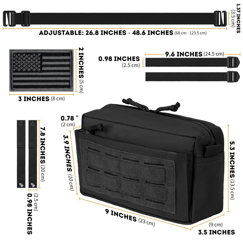 - Material: made of sturdy and water resistant nylon, smooth zipper, lightweight but durable. Comes with adjustable nylon shoulder straps, and 2 adjustable straps to keep your tactical admin pouch in place.