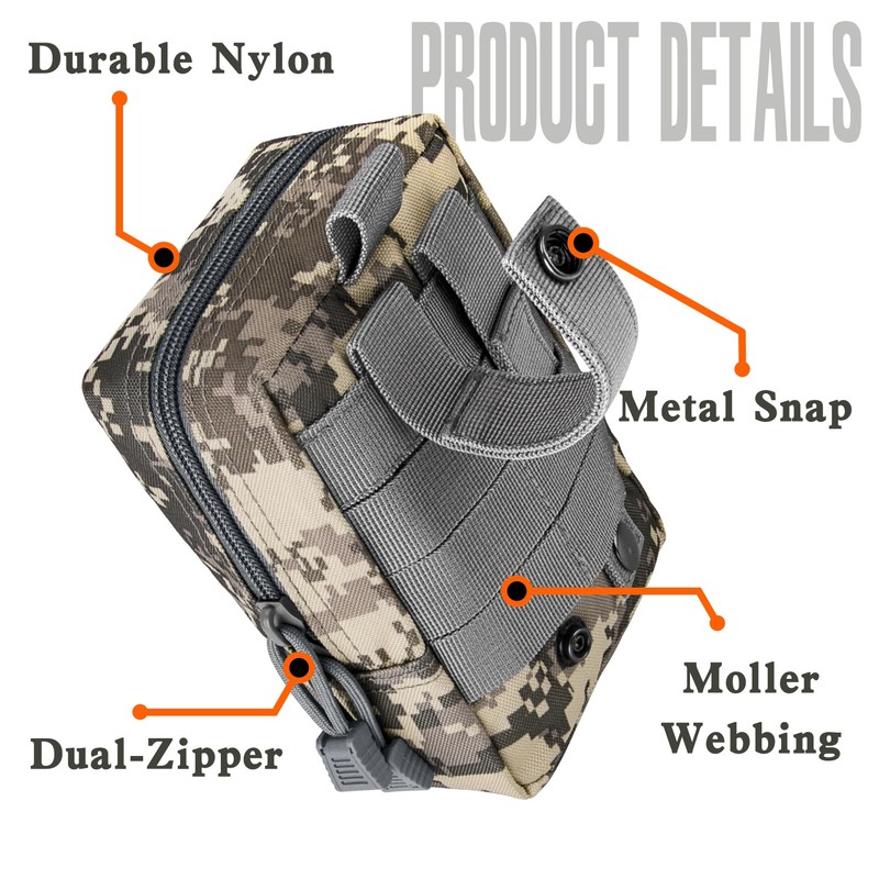 - Dual-zipper: allows you to quickly zip the pouch shut from either both sides or access just one side of the tactical pack without completely opening it.