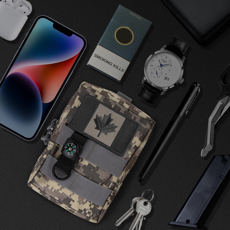 bvya Tactical Molle Pouch Multi-Purpose Compact Waist Pack Water-Resistant Small Utility EDC Pouch with CA Flag Patch for Molle Backpack, Mini Compass Included