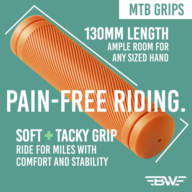 BW MTB Bike Grips – Comfortable and Grippy 130mm Bicycle Handlebar Grips – Blue/Black